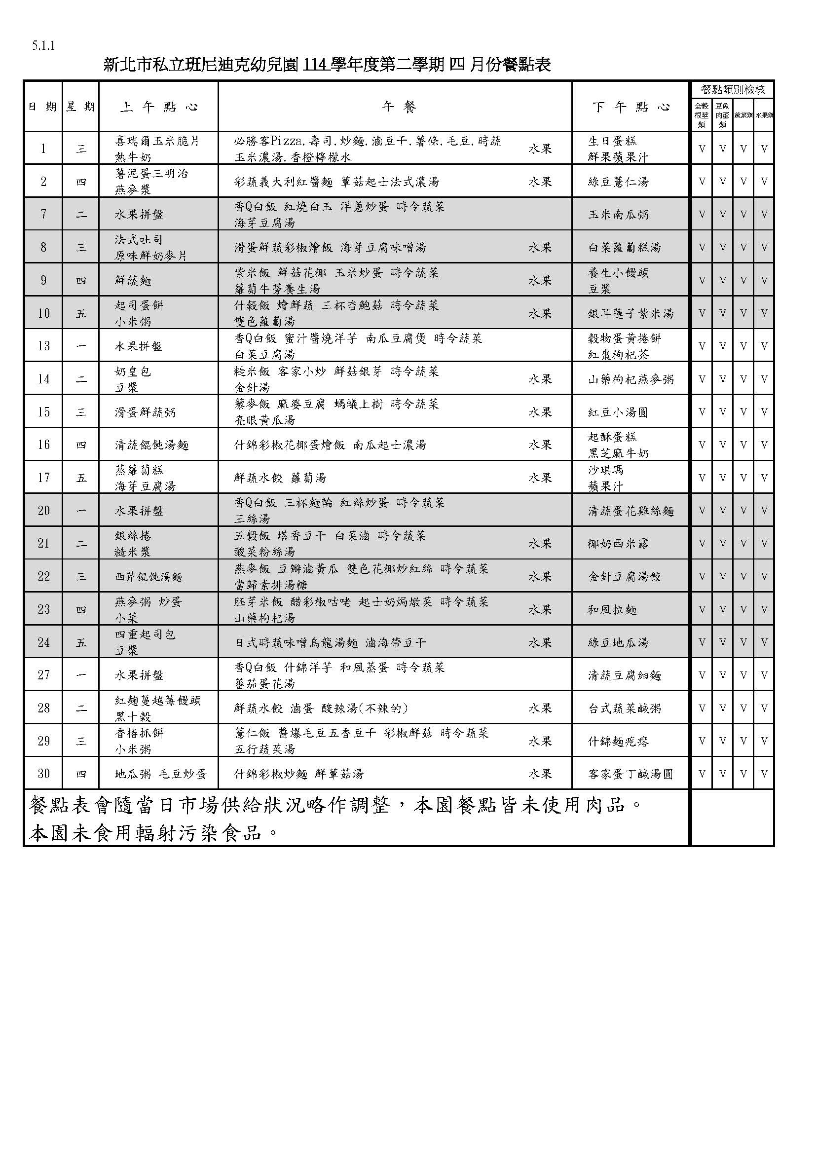 115年4月餐點表